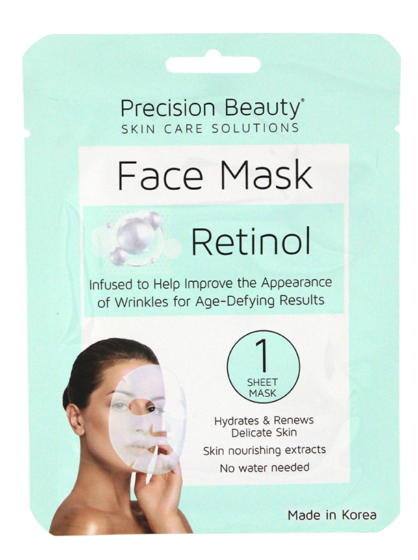 Precision Beauty 5 Pack Korean Facial Mask, Retinol (Pastel)