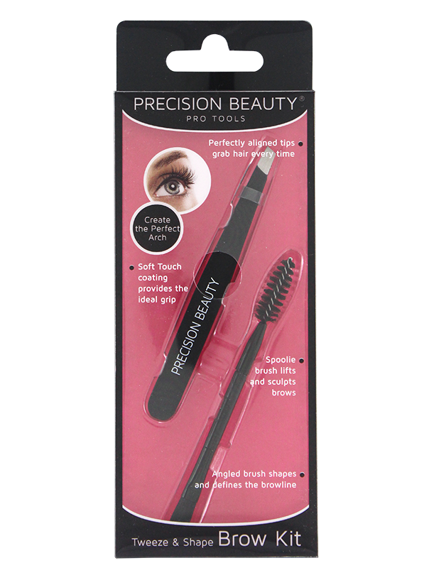 Precision Beauty Pro Slanted Tweezer & Brow Spoolie Brush in Black